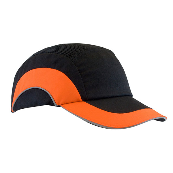 Bump cap for head protection with mesh on top. This baseball bump cap is two tone contrast.